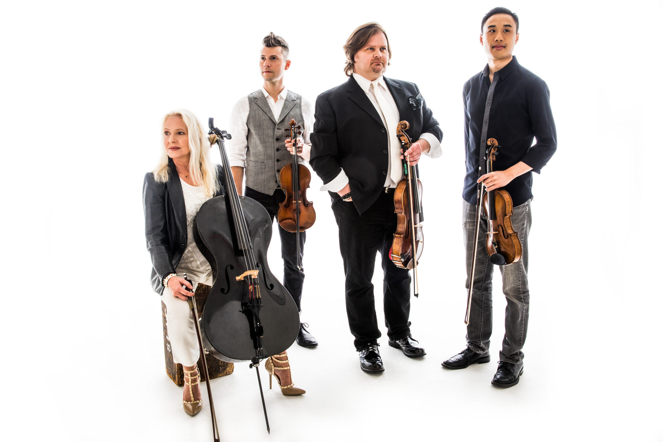 Composer performers—Ralph Farris (viola), Kip Jones (violin), Dorothy Lawson (cello), and Corin Lee (violin)—have themselves been commissioned by the Brooklyn Academy of Music, Georgia Tech, and the NEA. The quartet regularly performs music by such celebrated composers as Julia Wolfe, Jerod Impichchaachaaha’ Tate, Marcelo Zarvos, and Leilehua Lanzilotti. It has worked with a kaleidoscopic array of legendary stars as well as emerging talents in virtually every genre, including Bang on a Can All-Stars, Vijay Iyer, David Byrne, Sō Percussion, Todd Rundgren, jazz legend Kurt Elling, Joe Jackson, Ron Carter, Stewart Copeland, Raven Chacon, Thomas Dolby, John King, Ursula Oppens, Laurence Hobgood, Jake Shimabukuro, STEW, and Lionheart. In creating its stage productions, the quartet has partnered with theater directors Annie Dorsen, Steve Cosson, Daniel Flannery, and Grant McDonald; projection designers Deborah Johnson and John Narun; and choreographers Wally Cardona, Gina Gibney, Annie-B Parson, Dusan Tynek, and Mathew Janczewski.